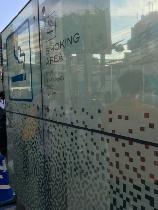 As i wandered Tokyo on my first day, I came across a strange, glassed-off area in Shinjuku. I wondered what everyone was doing huddled in their together. The closer I got, the reality dawned: it was a group of smokers in their own private, enclosed space. Not an art installation or some kind of special event, just your average Japanese folk going outside for a smoko.